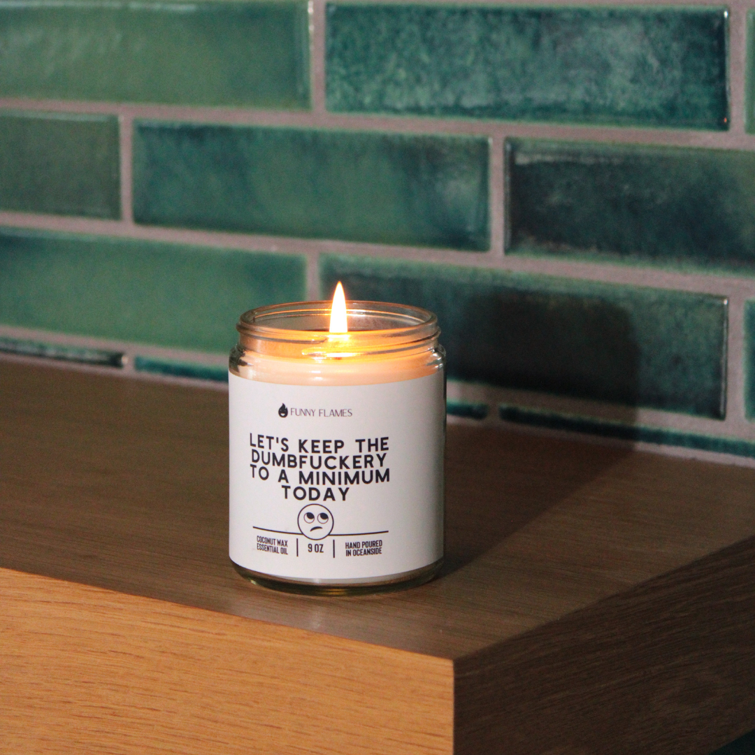 Our "Let's Keep The Dumbfuckery To A Minimum Today" candle is an ideal gift for anyone with a sense of humor and a love for all things tropical. It's also a great way to treat yourself to a moment of relaxation and self-care.